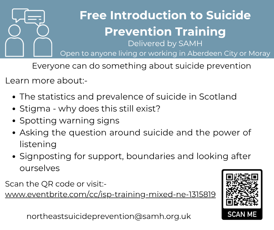 These are online sessions via Teams open to anyone who in Aberdeen City or Moray. Dates are: